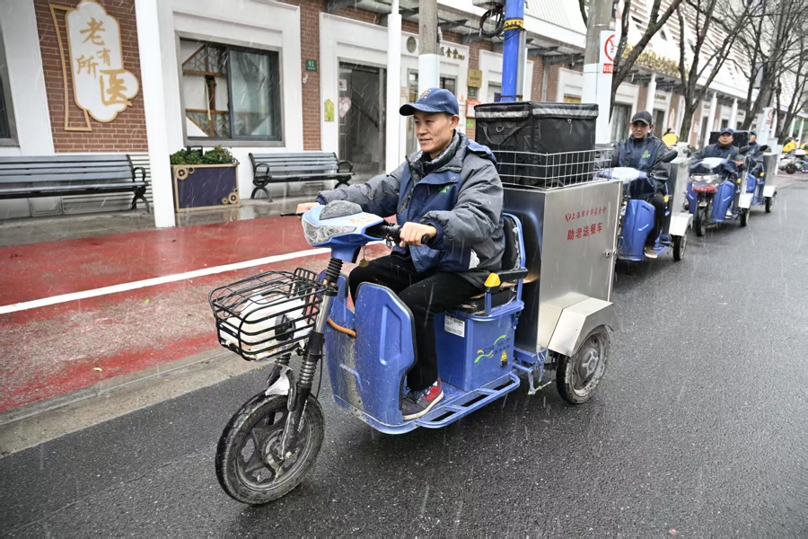 虽然寒潮大降温,室外体感温度接近零度,但一路小跑的孙中法却额头冒细汗,分秒必争地穿行在不同居民区楼栋间,熟络地敲响一位位送餐老人的家门。“这些老人们大多是高龄、独居以及生活需要照料的,这种极端天气他们更是岀不了门,尤其需要我们服务到位。我车子开得稳当点,人跑得再快一些,社区的392名老人们就都能准时吃上热乎饭啦!”孙中法用朴实的话语道出了温暖的心声。